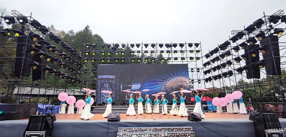 铸牢中华民族共同体意识•湘西长行•十八洞民族吉客群众大舞台于11月3日在十八洞村飞虫停车场精彩上演。本次活动汇聚多地群众文艺力量,以丰富多彩的节目形式,呈现一场充满民族风情与民族团结浓厚氛围的文化盛宴。