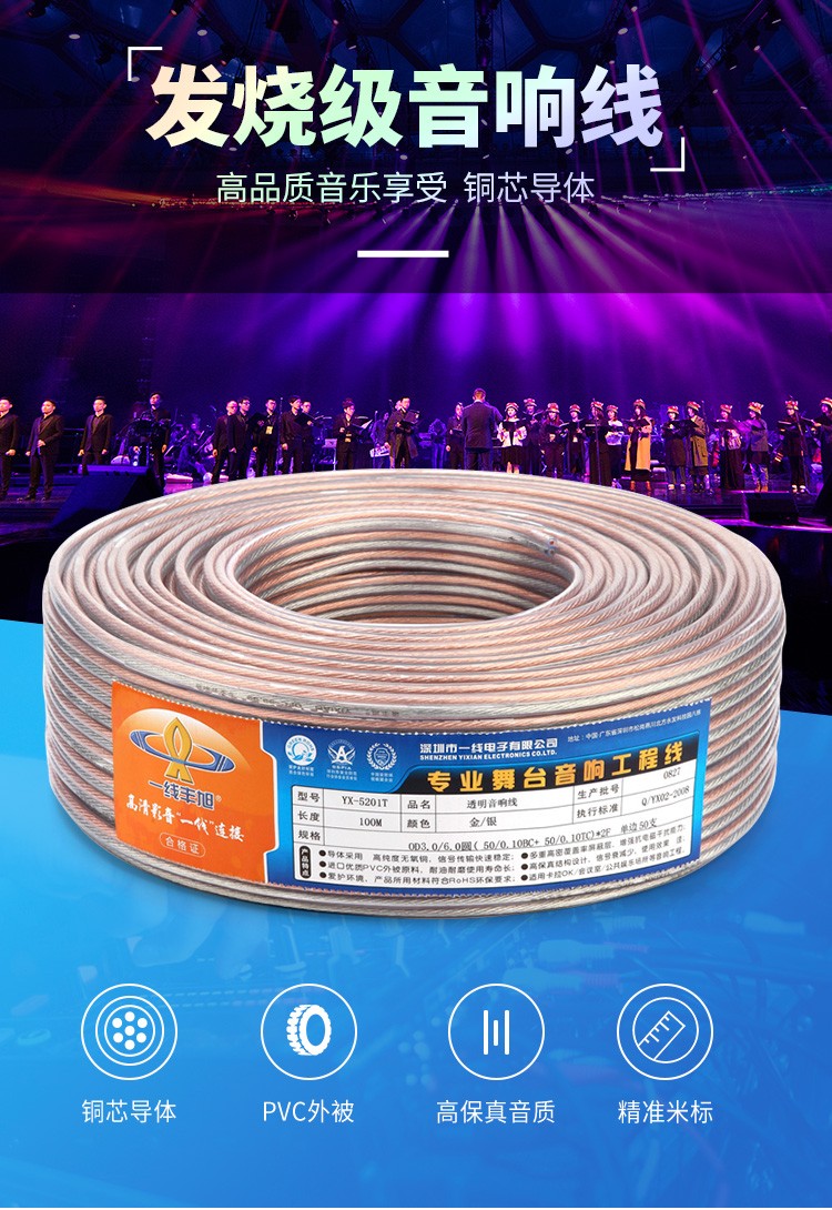 一线丰旭ESHINE 透明纯铜+镀锡铜喇叭线 音响线 音箱线