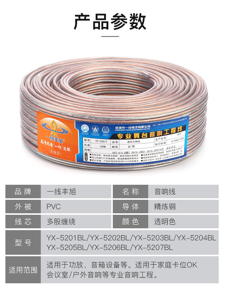 型号:透明音响线