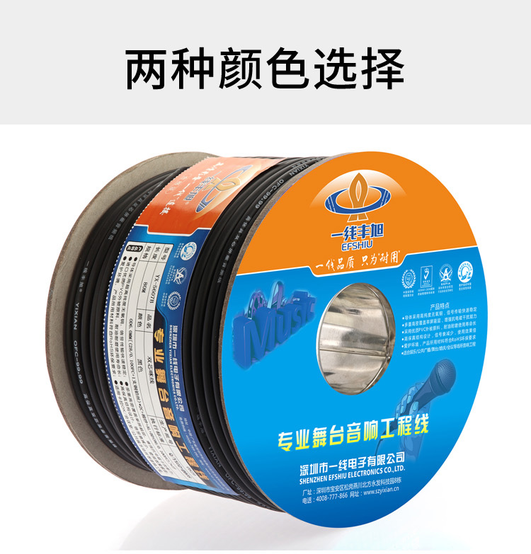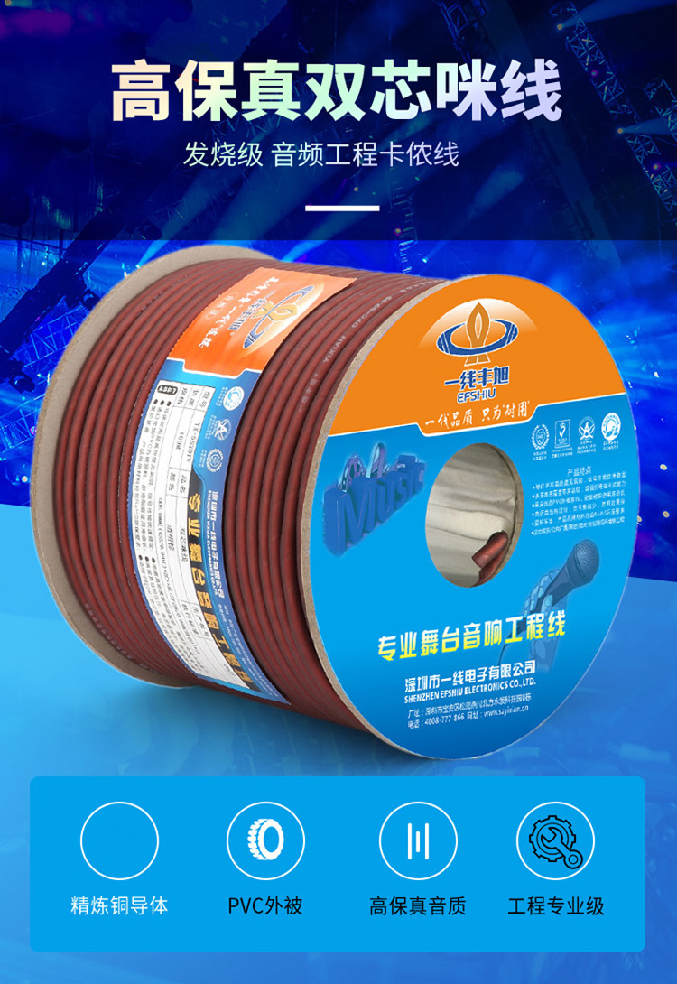 一线丰旭ESHINE 高保真双芯咪线 话筒线 麦克风线 信号线 舞台灯光控制线