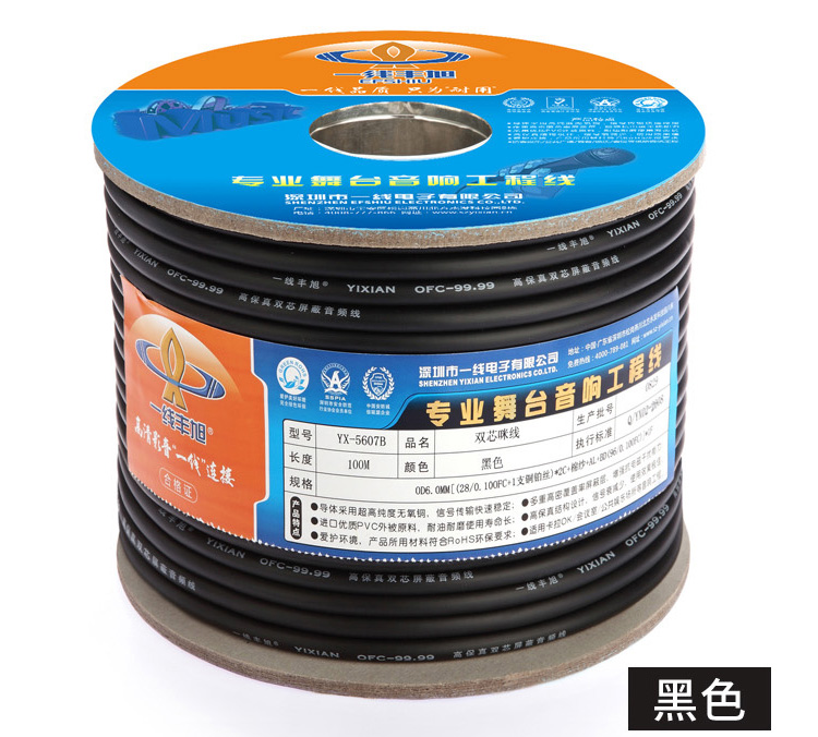 YX-5607B | OD6.0MM[(28/0.10BC+1支铜铂丝)x2C+棉纱+AL+BD(96/0.10BC]x1F 2x0.24mm² | 米 | 100 | 纸盘 |