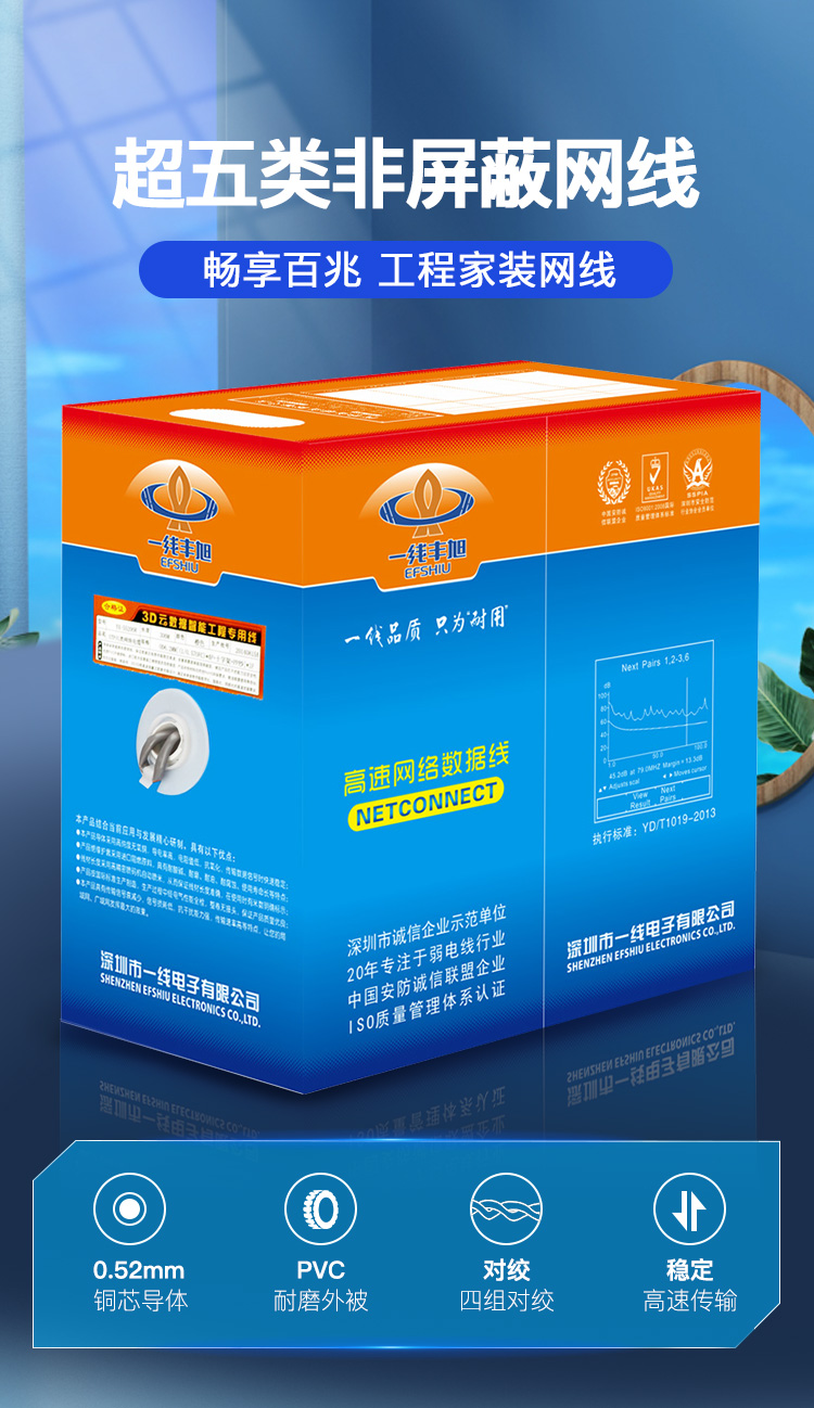一线丰旭ESHINE 超五类网线 千兆网线 机房布线网络线 监控网线 UTP CAT5e网线