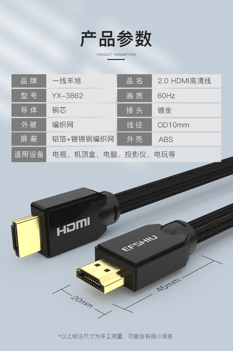 型号:YX-3862 HDMI线2.0版4K数字高清线