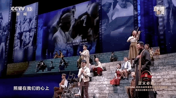 纪念中国人民抗日战争暨世界反法西斯战争胜利80周年文艺晚会《正义必胜》3日晚在北京人民大会堂隆重举行。在8声庄严肃穆的钟声中,音诗画《山河铭记》拉开整场晚会的序幕。