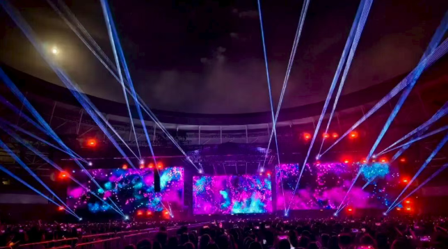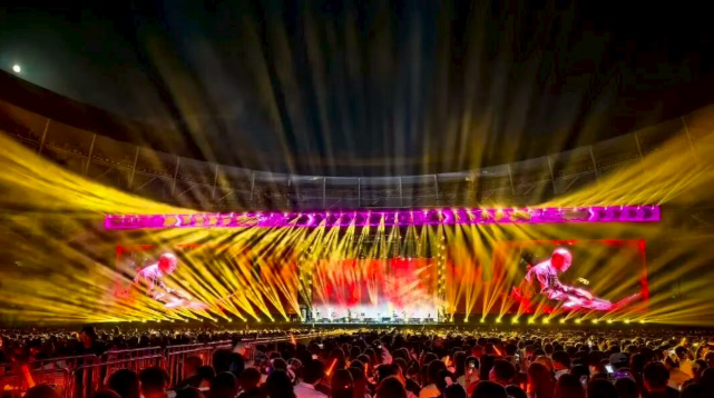 此次演唱会舞台,LiGHT SKY 光束灯系列以 “全场景覆盖、高精准控制、强视觉冲击” 的优势,成为舞台效果的核心支撑。舞台背景由超大 LED 高清屏拼接而成,而 LiGHT SKY 光束灯则巧妙安装在舞台顶部及四周桁架位置,构建出环绕式光影包裹系统,让观众仿佛置身于光影交织的音乐幻境中。