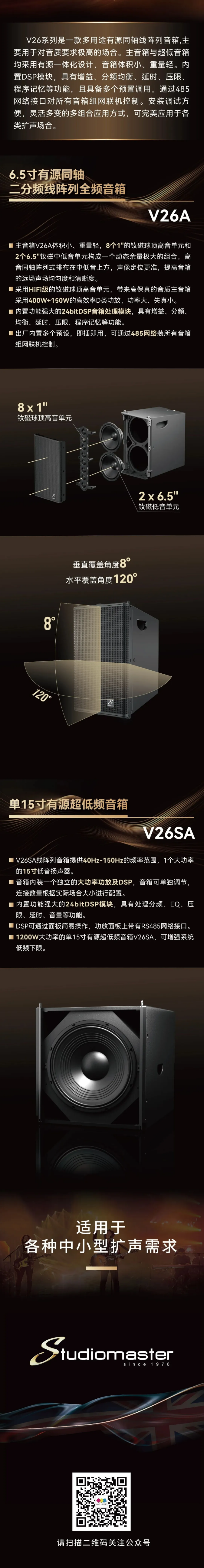 英国Studiomaster(录音大师)有源同轴线阵列音响系统V26系列