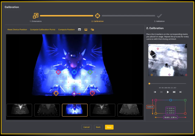 校准窗口可直接访问模拟器回放功能或摄像机设置(如曝光、增益等)。