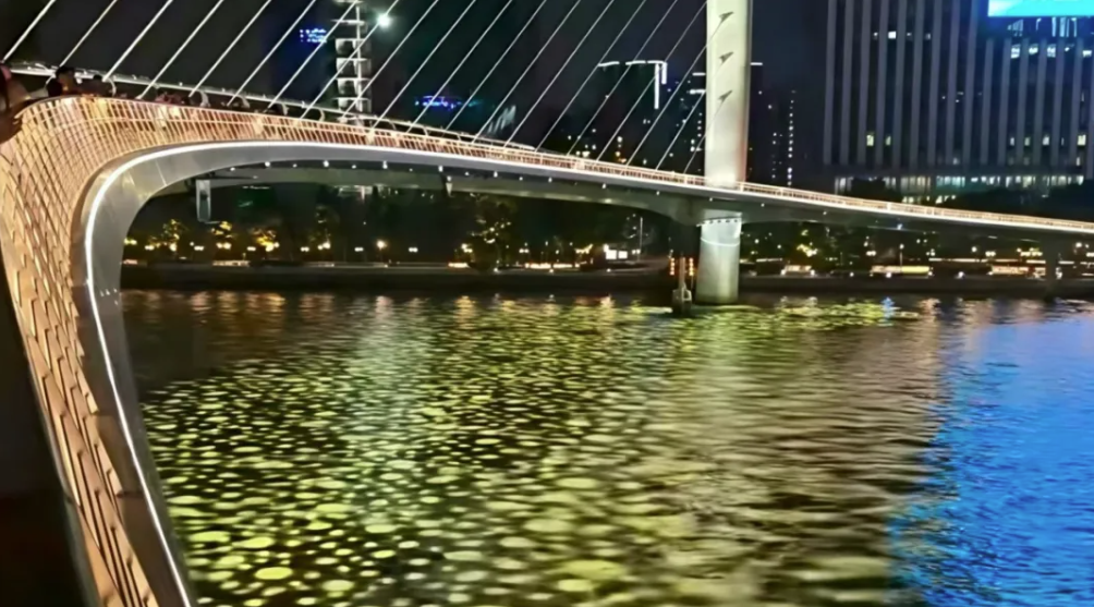 主会场的光影盛宴之外,星迪灯光在广州海心桥续写精彩。这座横跨珠江、毗邻广州塔的 198 米地标建筑,腹部固定安装了66台CL-1800 BSWF。灯光与桥体结构巧妙融合,流光溢彩间投射出特色图案,将珠江江面映照成璀璨星河,与奥体中心的灯火遥相呼应,共同勾勒出广州 “夜经济 + 体育盛事” 的活力画卷。5.8°-53° 变焦角度与 CMY、CTO 色彩调节系统,让灯光随夜幕流转变幻,既彰显了大湾区的现代化风采,也传递着全运会 “全民共享” 的热烈氛围。
