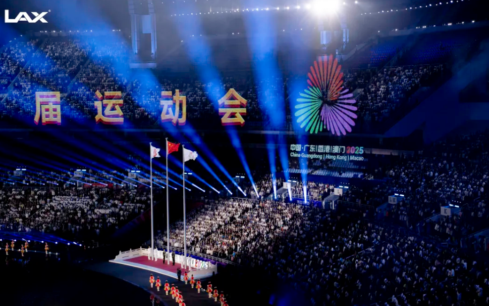当 11 月 9 日 20 时的钟声在广东奥体中心体育场敲响,第十五届全国运动会开幕式正式拉开帷幕。这是全国运动会历史上首次由粤港澳三地联合承办的体育盛会,意义非凡。整场开幕式将地域文化与前沿科技巧妙融合,精彩纷呈的文体展演不仅展现了三地多元交融的文化魅力,更让这里成为大湾区科技创新力量集中亮相的璀璨舞台。而在这场震撼人心的视听盛宴中,清晰、稳定且富有感染力的声音,无疑是传递艺术创意、烘托现场氛围、确保信息精准触达数万观众的 “关键神经”。它承载着三地人民的文化共鸣,也考验着技术保障的极限。在此背景下,LAX 凭借整套专业扩声系统解决方案,为开幕式的圆满呈现筑牢了坚实可靠的声学根基。