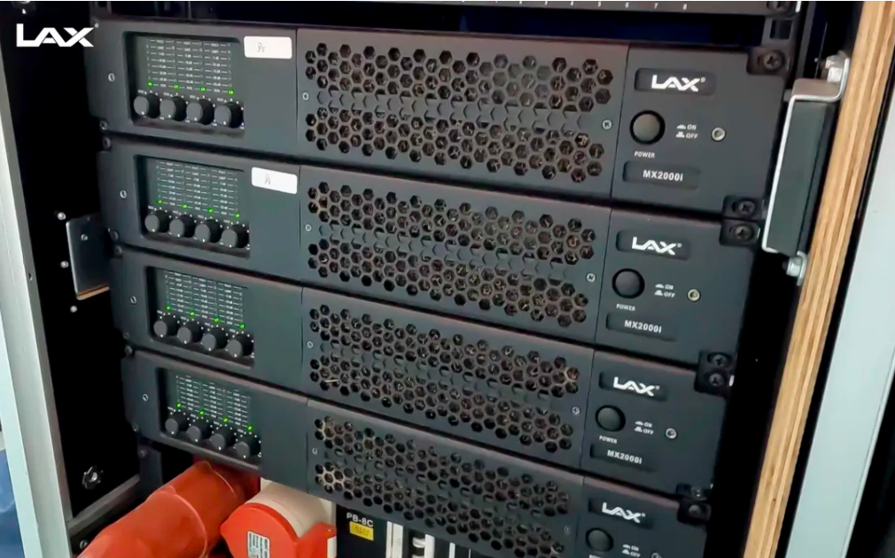 为应对风雨挑战,所有户外部署的线性阵列音箱及功放设备均采用高防护等级设计。其中,S700MC 等高强度特种钢材的运用,为线阵列音响的核心承重与吊挂提供了可靠的刚性保障,让设备在狂风暴雨中依然 “坚如磐石”。与此同时,基于氮化镓材料的高效能功放,在保持强劲驱动力的同时,有效降低了自身发热量,运行更为稳定,从根本上避免了因设备过热或潮湿引发的故障风险,确保了系统能够长时间、不间断地稳定运行,用硬核技术定力成功抵御了自然的考验。