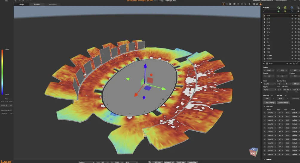 本届全运会部分赛事及活动依托现有体育场馆开展,这些场馆承载着岁月的记忆,却也普遍存在建筑结构复杂、声学环境不佳等问题。如何在 “老场馆” 中融入 “新科技”,实现一流的扩声效果,成为 LAX 团队面临的核心课题。而 LAX 自主研发的【龙光】Sound Director 声学仿真软件,在此刻发挥了关键作用。