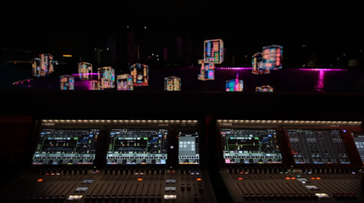 这份稳定与清晰,源于“硬核”的硬件支撑与架构设计。调音台作为系统的中枢核心,易科团队采用两台雅马哈DM7调音台搭配Rio 3224-D3和Rio 1608-D3接口箱,构建了主备系统,主链路采用Dante传输,备份链路采用模拟信号传输,即使发生故障,主备系统也能实现无缝切换,保证声音不中断。