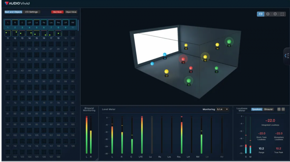 此次发布的菁彩声制作套件(Audio Vivid Production Suite)不仅支持对象(Object)与床声(Bed)混合的空间音频架构,还内置专属菁彩声Audio Vivid声像控制器、菁彩声Audio Vivid音频渲染器,提供 X/Y/Z 三维坐标定位、双耳/扬声器渲染等高级功能,大大提升声音设计的创意自由度。