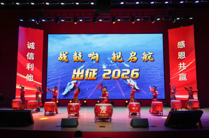 大会正式开始前,一场气势磅礴的鼓舞表演《战鼓响 舰启航 出征2026》震撼上演。铿锵有力的鼓点,犹如出征的号角,激荡在每一位音王人的心中,大会在这庄重激昂的氛围中正式拉开序幕。