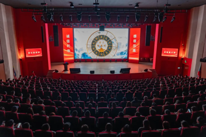 12月26日,音王集团2026年高质量发展誓师大会在音王智慧剧院隆重举行。本次大会以“改革创新、共赢明天”为主题,音王集团创始人 · 战略发展总设计师王祥贵、执行总裁陈众,以及来自集团各部门、各分公司的近六百名音王家人汇聚一起,共同回顾2025年的奋斗历程,展望2026年的发展蓝图。