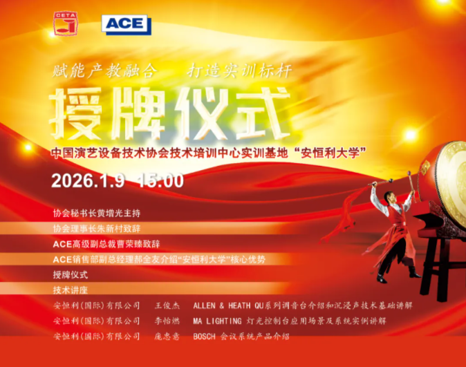 当产业需求与人才培养精准对接,一场改写行业人才格局的重磅盛会即将登场!中国演艺设备技术协会携安恒利重磅联手,为中国演艺设备技术协会技术培训中心实训基地“安恒利大学”正式授牌,这一里程碑时刻,邀你云端共鉴!