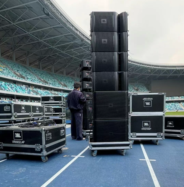 该方案实现了准确适配:4+2 阵列组合负责主声场覆盖,利用恒定曲率线阵列设计,让声音形成无缝衔接的声场屏障,从球场核心区到看台上沿的远距离听众,都能获得一致的听觉体验。