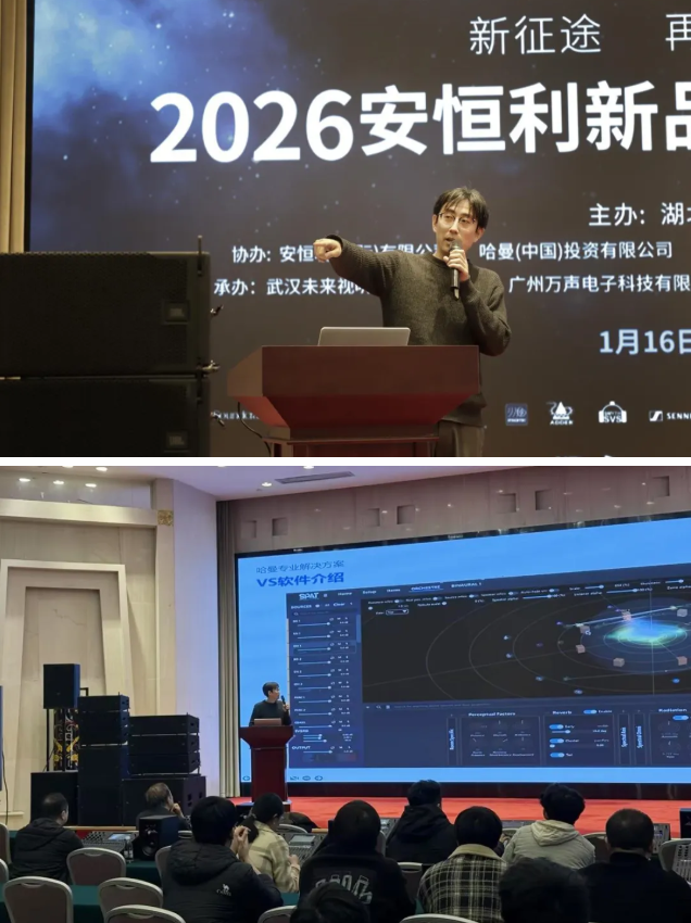 JBL Pro VRX 900系列长线阵扬声器系统凭借多项创新技术,在专业音频领域展现出显著优势。其核心亮点在于,实现了高声压级输出与低失真,确保全场频响均匀一致。系统搭载的过载保护模块能自动限制输入信号,避免单元损伤,提升可靠性。箱体采用紧凑轻量化设计,搭配多角度安装吊挂系统,可快速组建弧形或直线阵列,灵活适应不同场地。搭配VRX918S超低音音箱,能扩展低频下潜,满足全频段扩声需求。整体而言,朱鹏亮先生的介绍让参会者了解到VRX900系列以高清晰度、准确指向性及便捷部署能力,是固定安装与流动演出场景下的顶级解决方案。