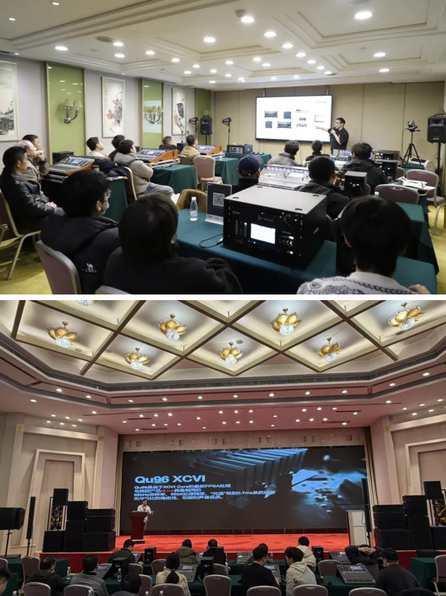 随后在两个会场分别开展了ALLEN & HEATH调音台实际操作培训并由安恒利(国际)有限公司技术经理王磊先生、朱鹏亮先生进行了讲解。