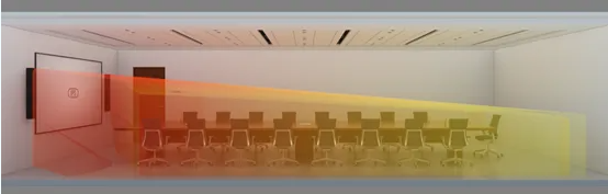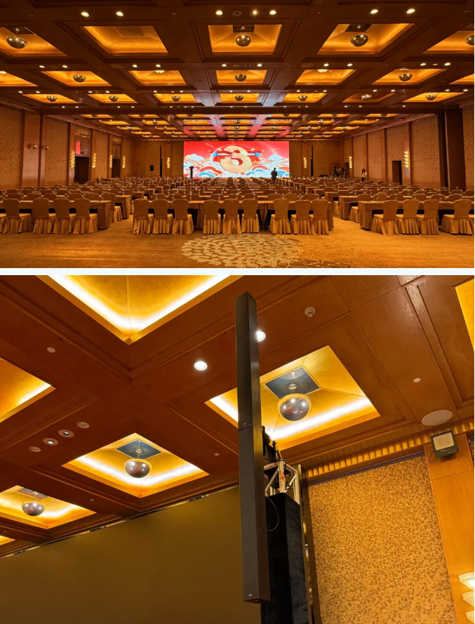 在实际会场应用中,为最大限度降低反射声干扰,需将直达声波束适度向下倾斜,避开后墙反射区域,从而有效提升系统直返比,优化整体听感体验。