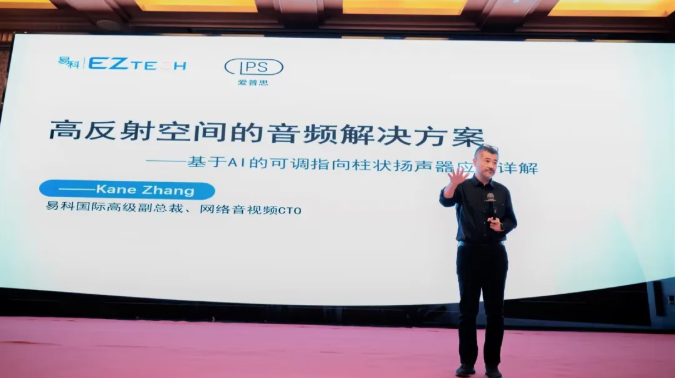 1月16日,易科高级副总裁、网络音视频CTO——Kane Zhang先生,携IPS BF12 AI自适应可调指向柱式扬声器亮相“2025江苏智慧城市与建筑智能化行业生态大会”,并发表了题为《高反射空间的音频解决方案 - 基于AI的可调指向柱状扬声器应用详解》的精彩演讲。Kane Zhang先生深耕音视频集成领域多年,拥有深厚的实战积淀,更在AI技术与音视频行业的融合应用方面有着深刻独到的见解。会上,他以深入浅出的讲解,阐述了AI技术如何赋能音视频集成领域实现跨越式发展,赢得了现场嘉宾的广泛关注。