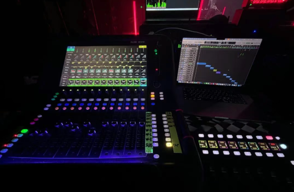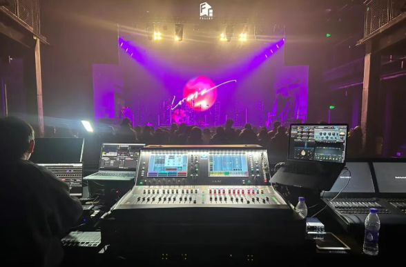 据悉,本次巡演北京站音频系统延续PM共享接口箱配置,构建起分工明确、协同高效的专业架构。PA系统采用ALLEN & HEATH dLive C3500控制台搭配CDM64接口箱,作为dLive系列旗舰级控制台,dLive C3500拥有144个可分配推子条、两块12吋电容式触摸屏及创新友好的操作界面,能让PA调音师快速响应演出动态,专注声音打磨;搭配CDM64接口箱充足的输入输出资源,可轻松驾驭乐队各类乐器拾音与信号传输需求,构建起覆盖全场的均匀声场。Monitor调音台则选用ALLEN & HEATH Avantis Solo搭配IP8,这款荣获多项行业大奖的调音台,搭载96kHz XCVI FPGA引擎,以0.7ms超低延迟性能,为乐手提供精准、实时的返送混音,护航每一处舞台表现细节。