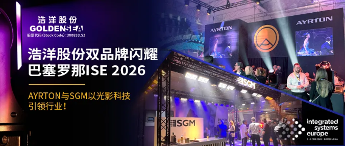 ISE 2026展会将持续至2月6日,浩洋股份旗下AYRTON与SGM将继续以专业的产品、优质的服务,与全球行业伙伴深入交流、携手合作,聚焦视听技术融合与场景应用创新的核心趋势,探讨光影科技的未来发展方向。未来,浩洋股份将继续依托自身的研发实力与全产业链优势,持续赋能两大品牌的产品创新与市场拓展,推动AYRTON在高端演艺灯光领域持续突破,助力SGM拓展多元场景市场,同时深化全球化布局,加强国际合作与技术交流,以光影科技为纽带,引领全球专业灯光行业高质量发展,让中国智造的光影力量照亮更多国际舞台。