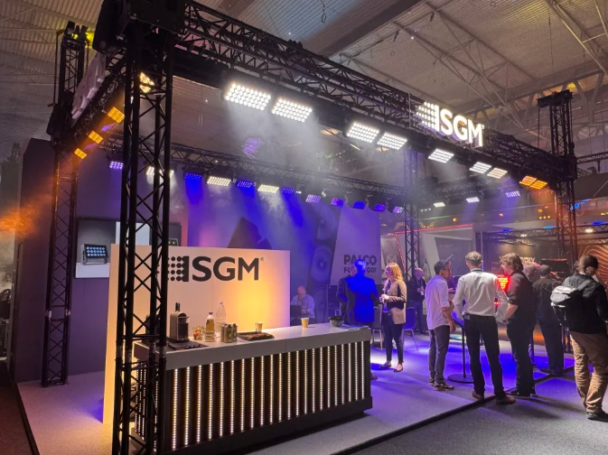 SGM展位聚焦“场景化创新,适配多元需求”,展示了涵盖舞台演出、商业照明、文旅夜游等多领域的全系列灯光解决方案与核心产品。SGM依托浩洋股份的全产业链支持与技术研发实力,此次带来的多款新品重点强化了产品的兼容性与易用性,兼顾性能与性价比。既延续了SGM一贯的稳定可靠的产品基因,又针对当下行业对轻量化、智能化、节能化的需求,优化了产品设计与系统适配能力,现场工作人员通过一对一演示,向参展观众详细介绍了产品的核心优势与场景应用案例,吸引了大量欧洲本地集成商、经销商的咨询与洽谈,为后续海外市场拓展奠定了坚实基础。