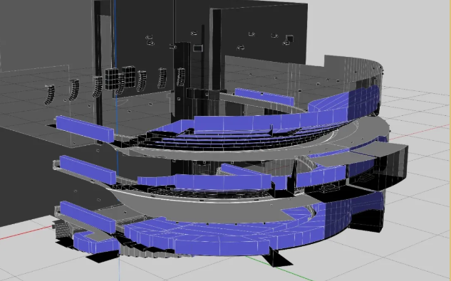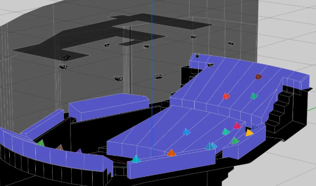 L-ISA沉浸式扩声系统改变了传统的双阵列模式,在舞台上方部署了7组独立且等间距的 Kara II 线声源场景阵列(Scene)/拓展阵列(Extension)。