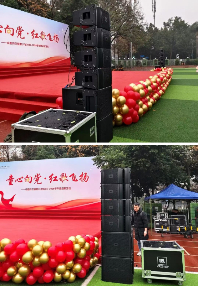 2025年12月31日,成都师范银都小学举办“童心向党•红歌飞扬”迎新红歌会,师生以歌声传承红色基因、共迎新年。针对校园声学场景需求,JBL Pro VRX900P与PRX915组建专业音响解决方案,依托专业声学实力为红色旋律赋能,传递童声中的爱国情怀,为师生构建沉浸式聆听体验。
