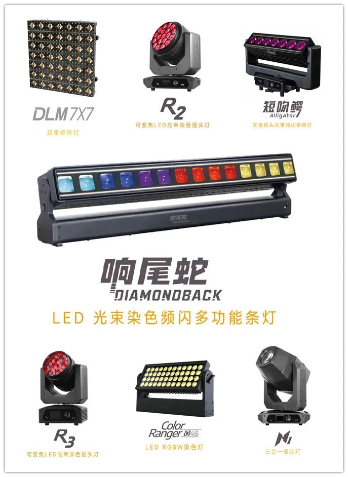 使用的EK灯光设备:DIAMONDBACK响尾蛇LED光束染色频闪多功能条灯、TERMINATOR终结者户外防水三合一摇头灯、Kx→100+高显LED切割摇头灯、H1三合一摇头灯、ALLIGATOR 短吻鳄无极摇头光束频闪染色灯、COLLIDER FC LED全彩频闪灯、COLLIDER-BAR-IP防水LED全彩频闪条灯
